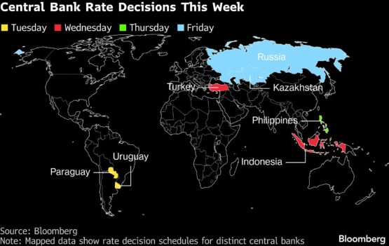 And in Russia, central bank policymakers on Friday will weigh whether to continue easing amid heightened uncertainty over potential inflation risks.