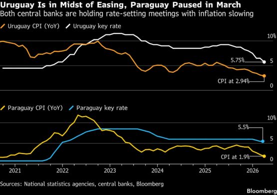 Paraguay’s central bank kept its key rate unchanged at 5.5% in March after consecutive quarter-point cuts. Since then, the March inflation report showed that the annual print had slowed to 1.9% from 2.3% in February.