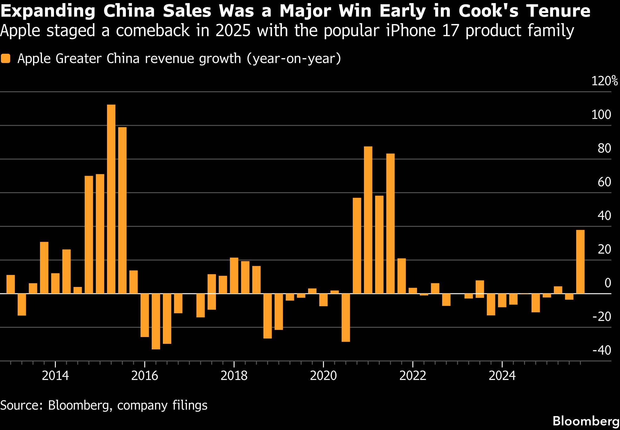 Cook inherited one of the world’s most respected retail operations and built it up. He’s added roughly 200 stores to Apple’s global network and, importantly, expanded its mainland China presence dramatically. Apple now has 50 stores across locations like Chongqing, Guangdong, Hubei and Yunnan, reaching vastly more consumers in the world’s biggest market for smartphones and PCs. Apple’s success in China stands out among US Big Tech peers, with many like Google and Meta Platforms Inc. largely shut out from the consumer arena.